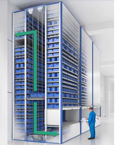 垂直升降立体货柜采用“货物到人”的理念,通过将货物直接运送到操作员面前来提高生产率。